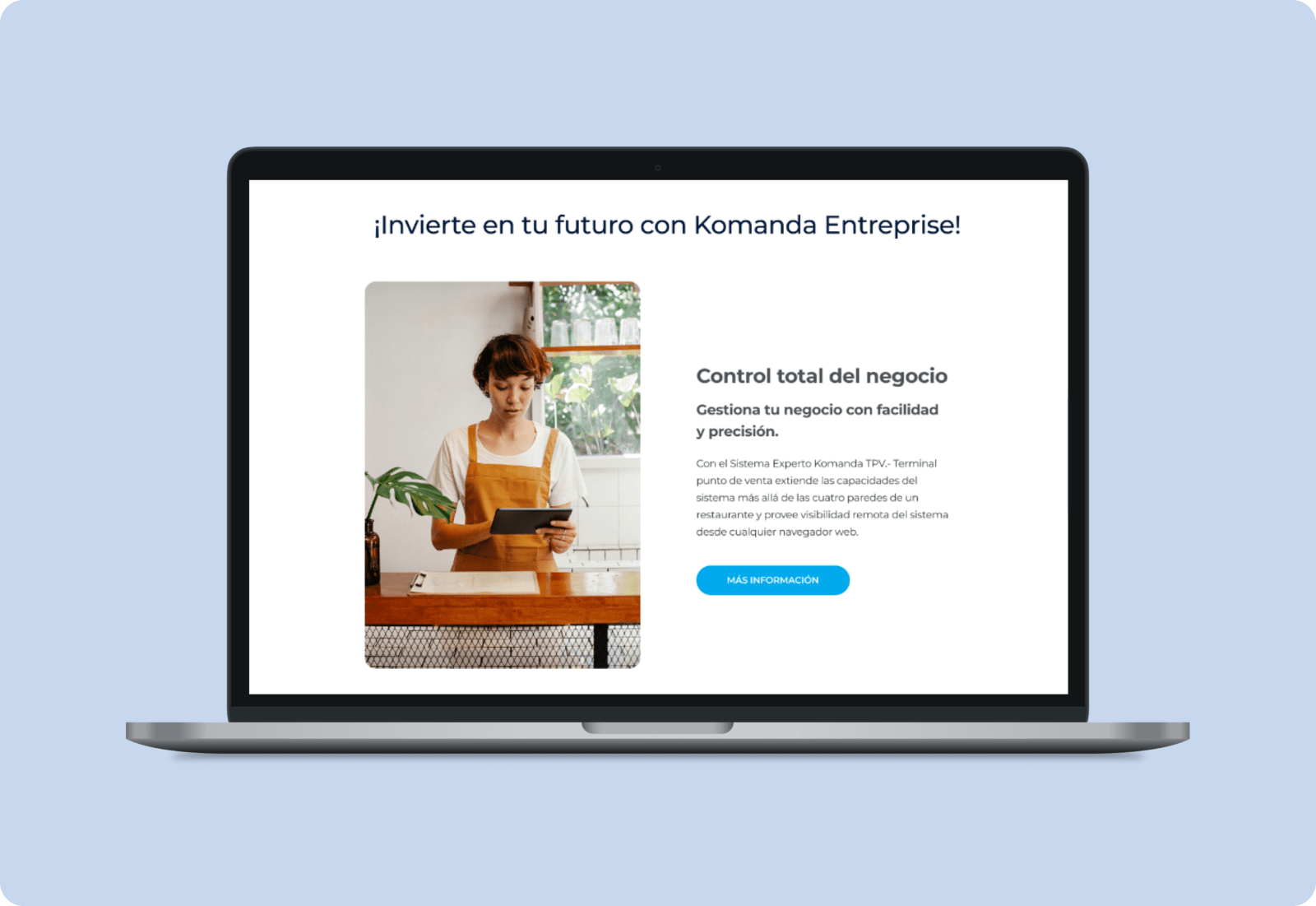 The challenge was to create a website to promote a software solution focused on the management of restaurants and cafés. Its main goal was to showcase the system’s key features in a clear, visual, and appealing way, targeting business owners in the food and beverage industry.